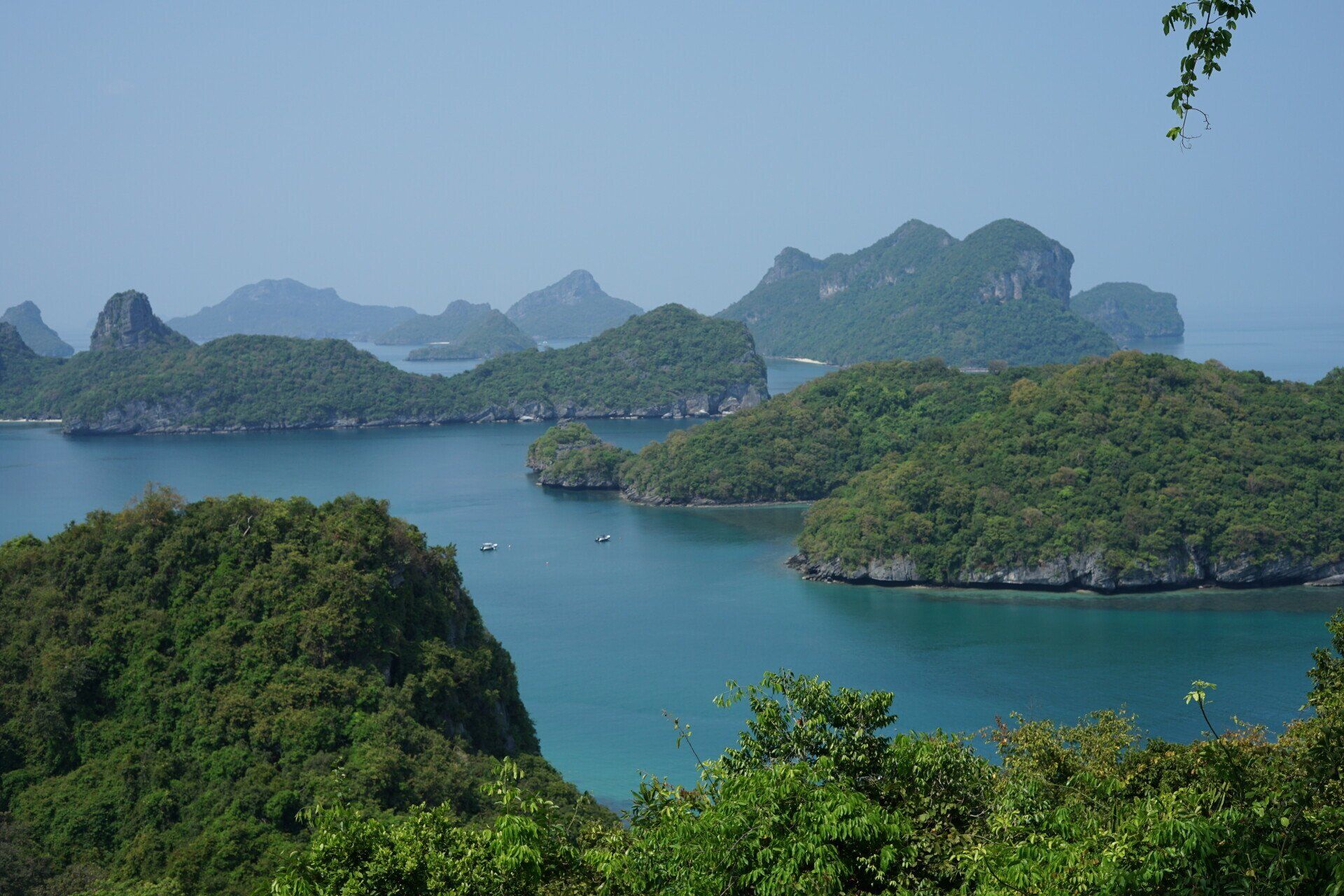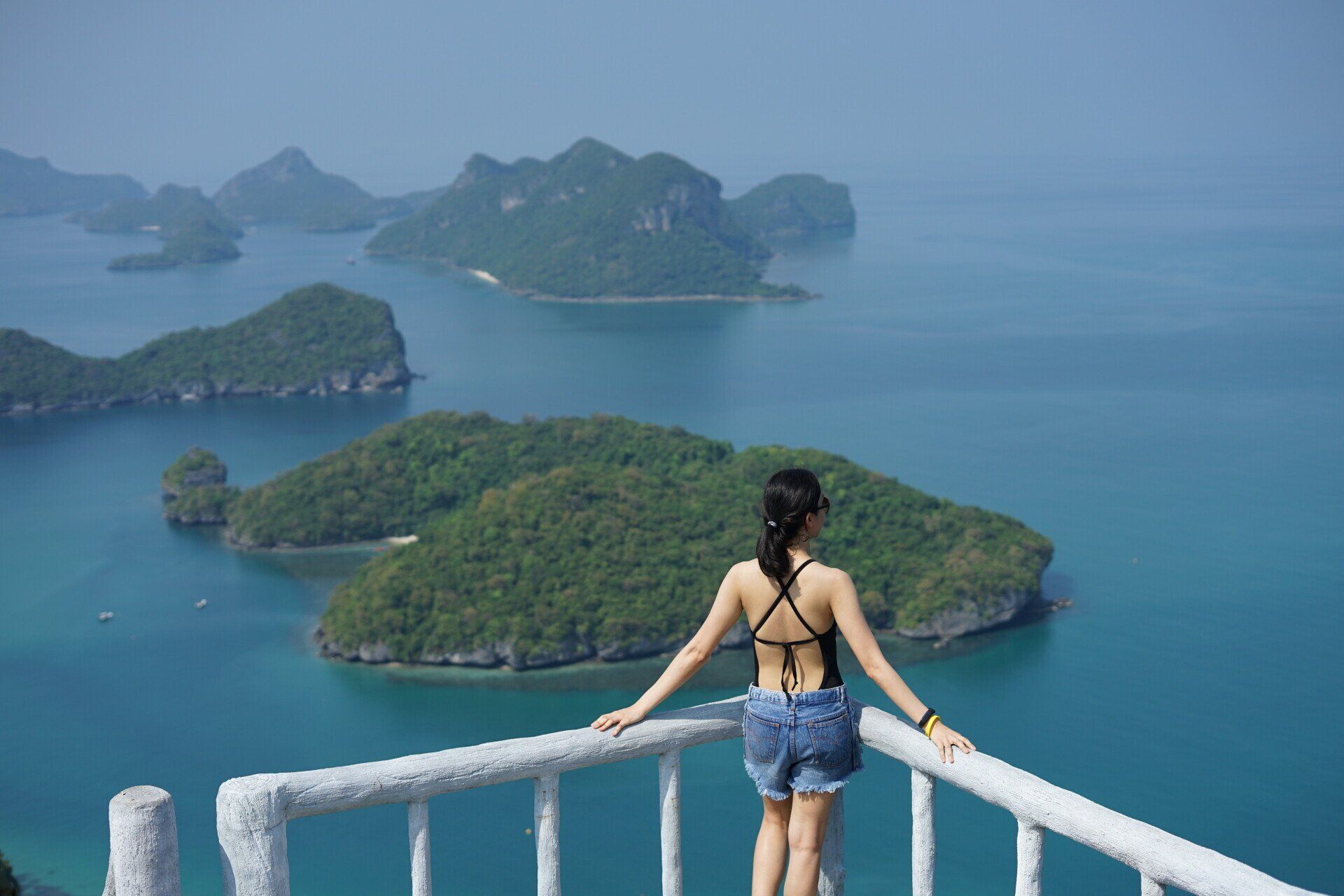 เกาะวัวตาหลับ -จุดชมวิวบนยอดเขาของเกาะวัวตาหลับ วิวหมู่เกาะประมาณ 42 เกาะ เรียงรายอยู่บนพื้นทะเลสีคราม