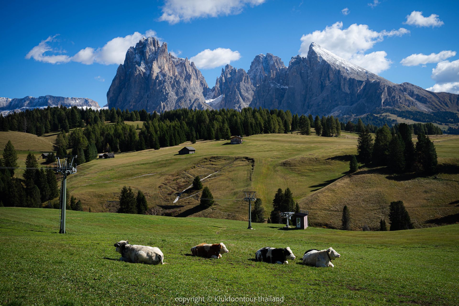 07.15 น. ถึง Alpe di Siusi นั่งกระเช้าไฟฟ้า Mont Sëuc Gondola ขึ้นไปยังAlpe di Siusi ทุ่งหญ้าบนที่ราบสูงที่ใหญ่ที่สุดในยุโรป