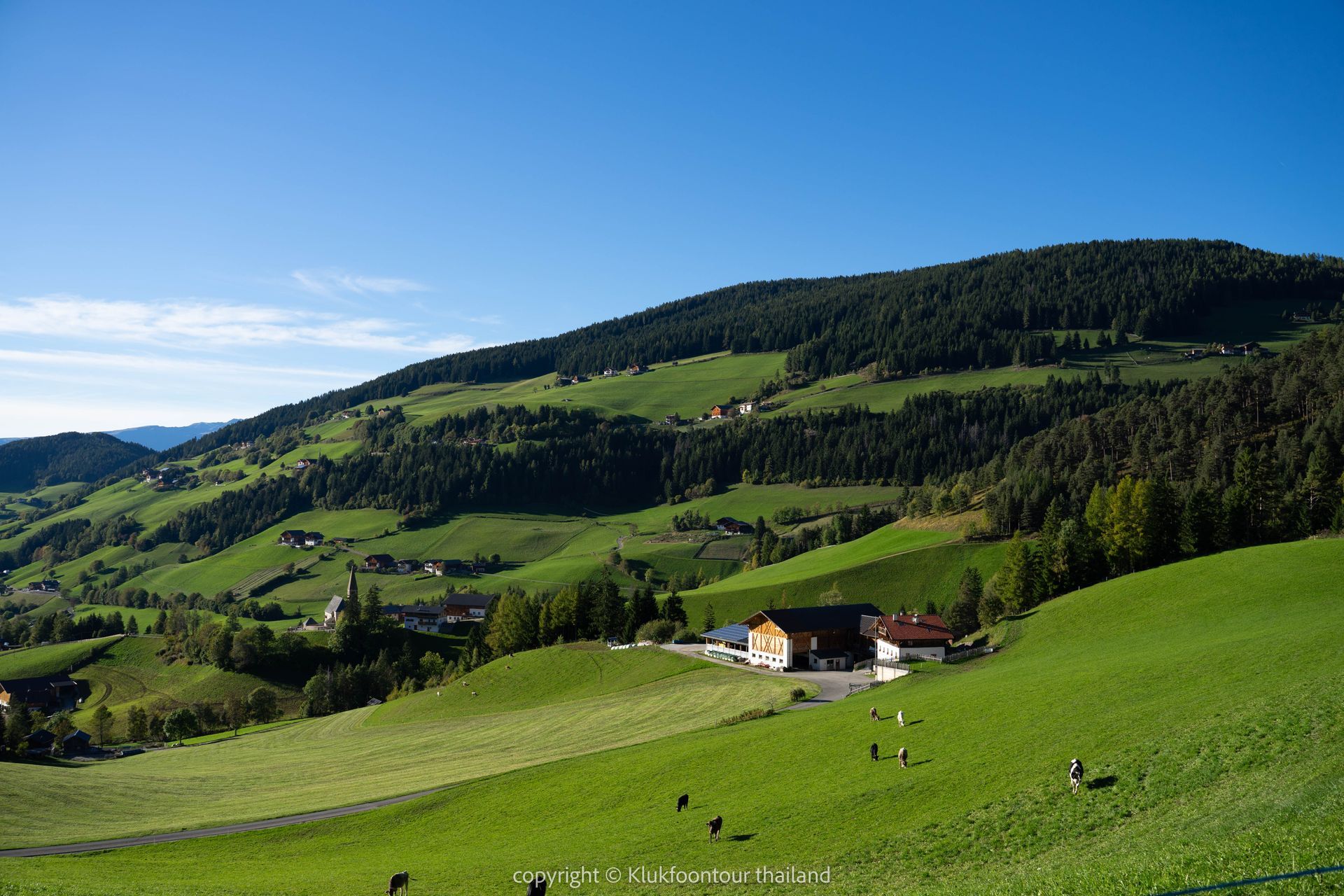 16.30น เดินทางกลับ แวะถ่ายรูปโบสถ์ Chiesetta di San Giovanni in Ranui โบสถ์บาโรกขนาดเล็กท่ามกลางทุ่งหญ้าสีเขียวและฉากหลังเป็นเทือกเขา Odle (ถ้ามีเวลาแวะโบสถ์ Chiesa di Santa Maddalena )
