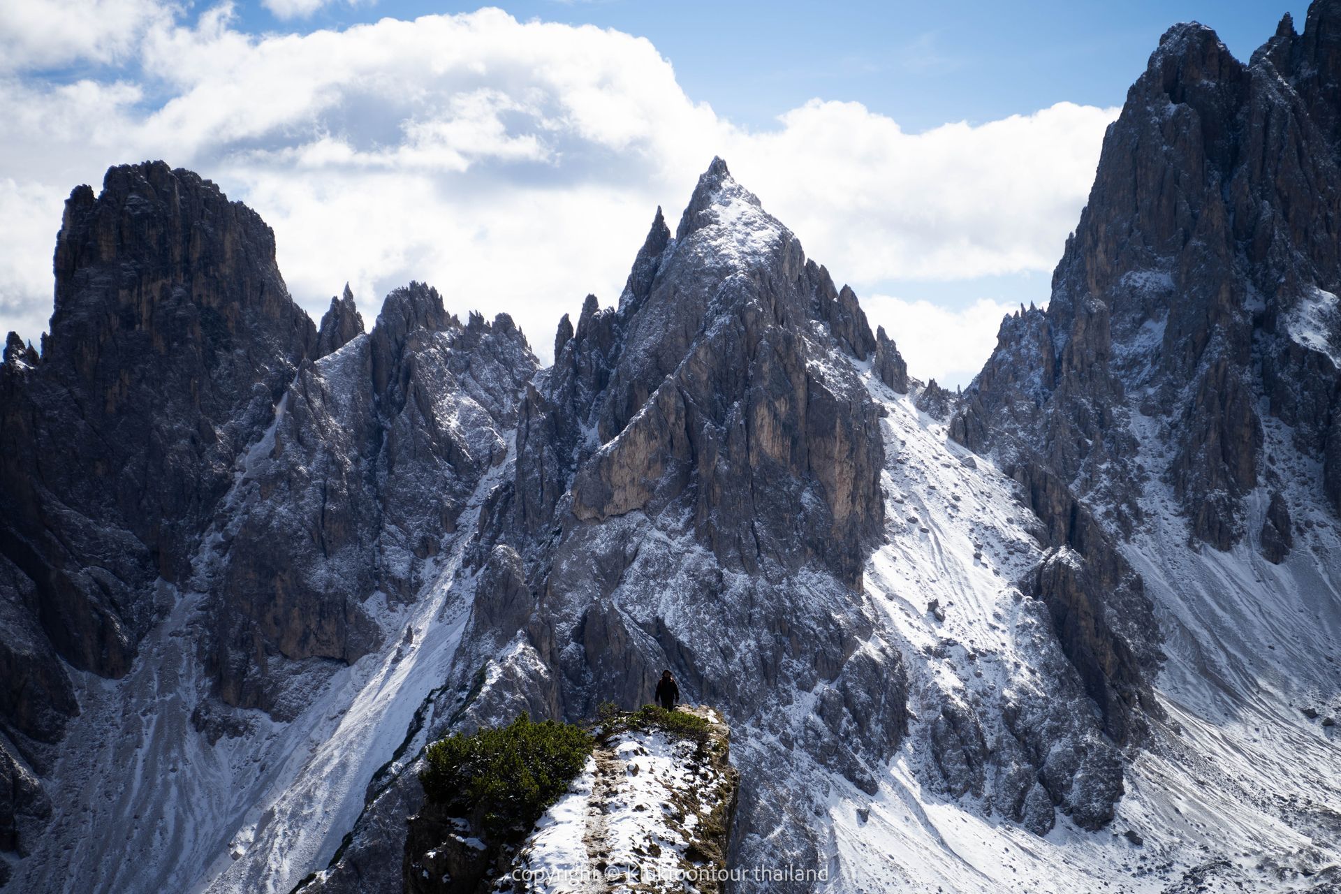 14.30น เดินไปเส้นทาง จุดชมวิว Cadini di Misurina จากร้านอาหารใช้เวลาเดิน 30 นาที เพื่อไปยังจุดชมวิว คาดินี ดิ มิซูรินา (Cadini di Misurina) กลุ่มยอดเขาหินปูนที่แหลมคมราวกับหลุดออกมาจากภาพยนตร์แฟนตาซี