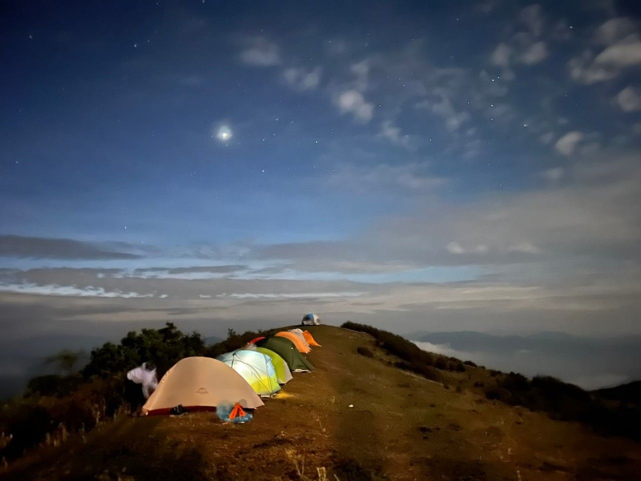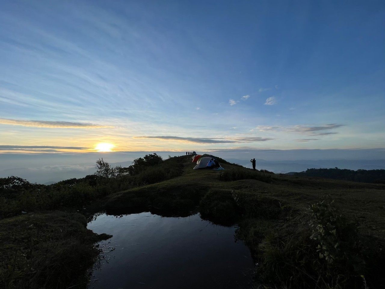 14.00น ถึงบนยออดอย ช่วยกันกางเต็นท์ ตั้งแคมป์ ที่บนยอดดอย และพักผ่อนตามอัธยาศัย