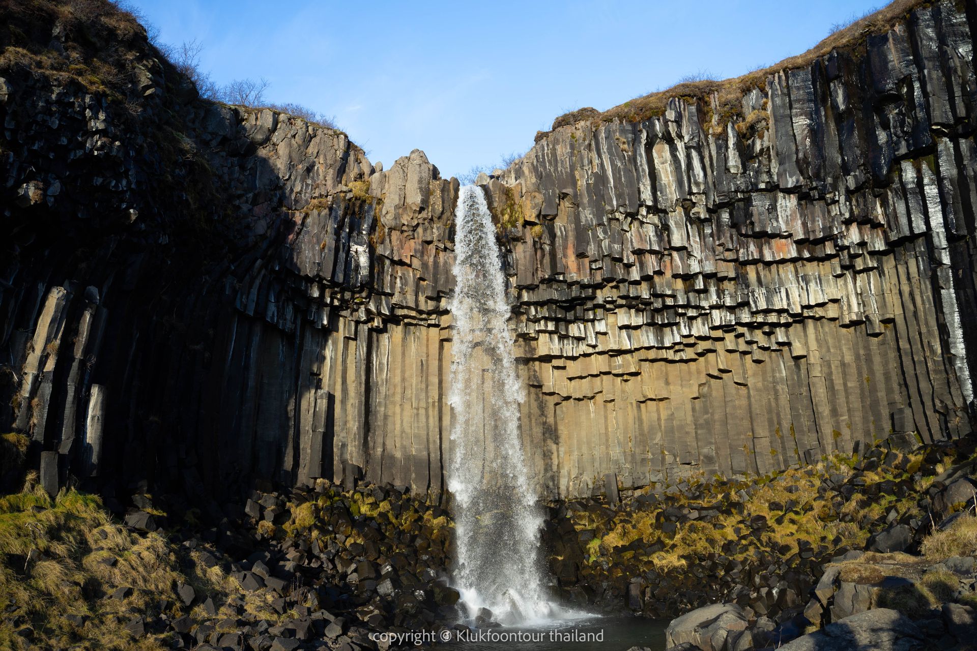 - ชมน้ำตก Skogafoss เป็นน้ำตกขนาดใหญ่ที่ตกมาจากหน้าผาสูง 62 m.