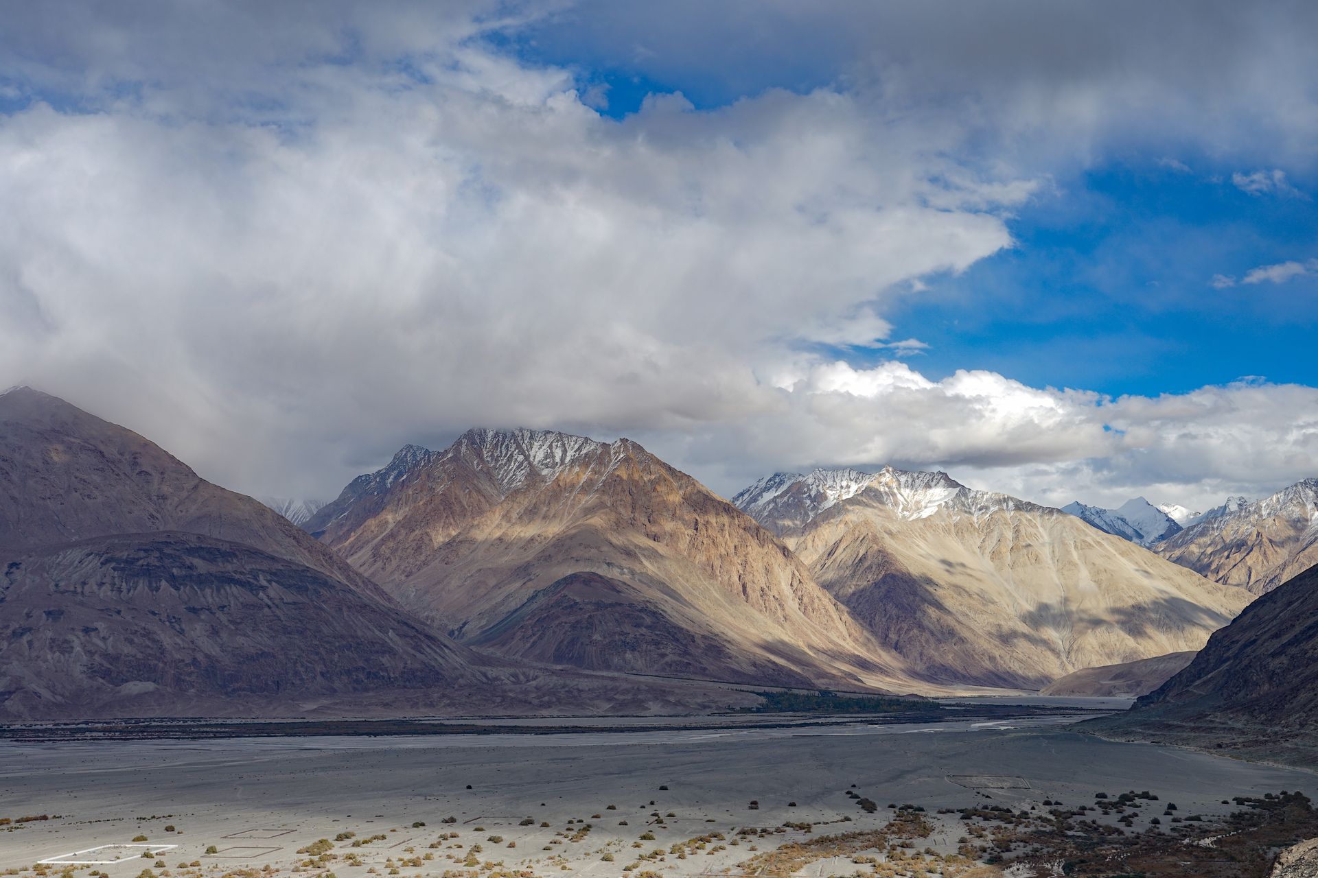 Nubra Valley ทางเหนือของลาดักห์ระหว่างเทือกเขาคาราโครัมและลาดักห์ ในเทือกเขาหิมาลัยใช้เวลาเดินทางจากเลห์ประมาณ 6 ชั่วโมง