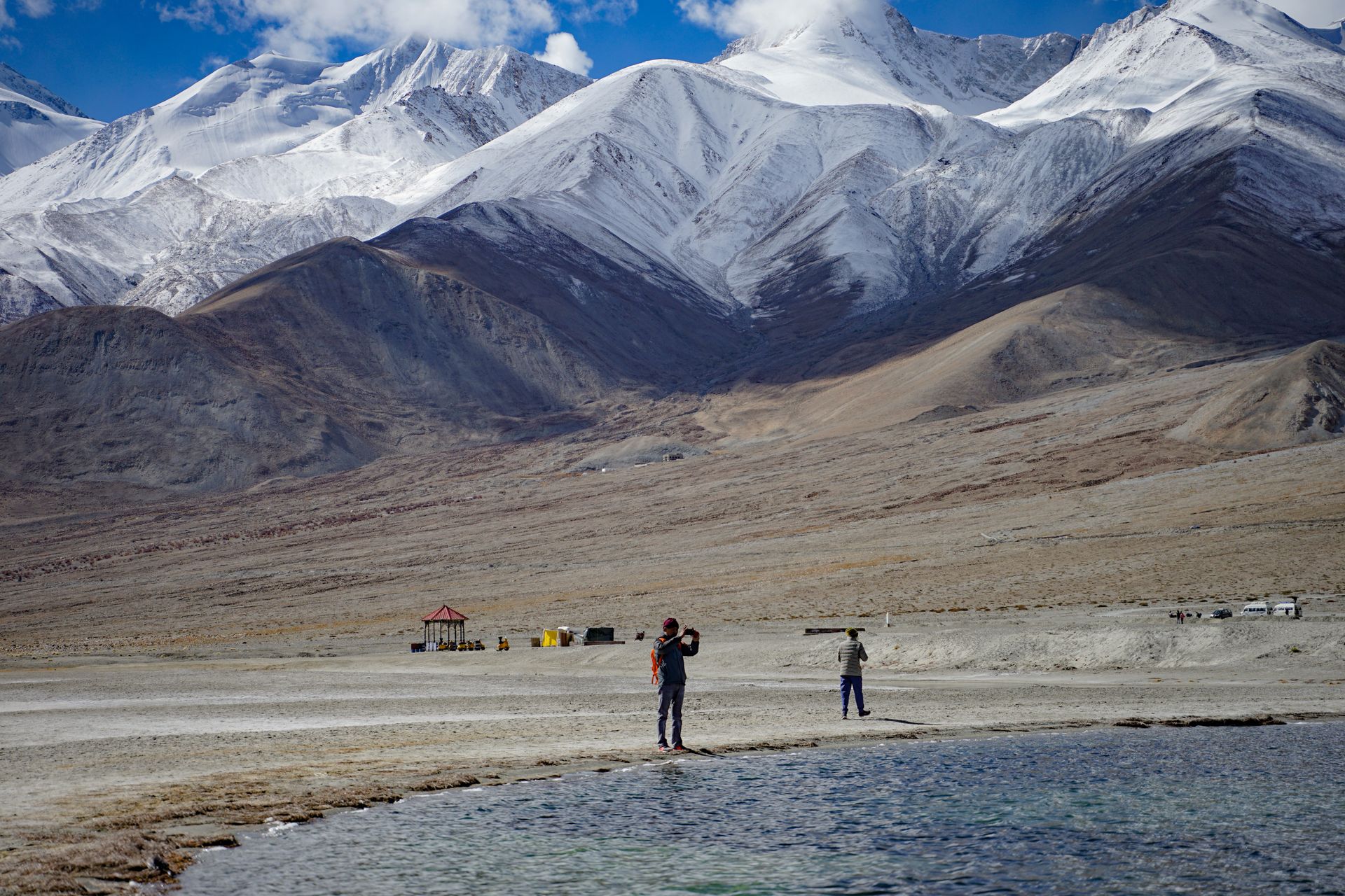 09.00น เดินทางไปต่อไปยังทะเลสาบปันกอง (Pangong lake) ทะเลสาปน้ำเค็มสูงที่สุดในโลก ที่ความสูง 14,000 ฟุต หรือ 4,267 เมตร เป็นสีเทอร์ควอยซ์ สูงสุดในโลก ด้านหลังเป็นแนวเทือกเขาหิมาลัย