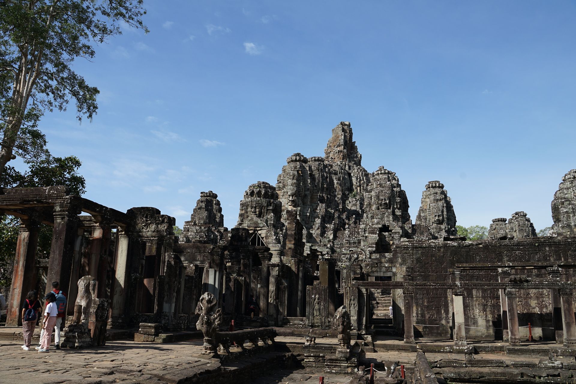 - ปราสาทบายน เป็นปราสาทหลวงประจำรัชสมัยของพระเจ้าชัยวรมันที่ 7 ถูกสร้างขึ้นโดยการนำเอาหินมาวางซ้อนๆกันขึ้นเป็นรูปร่าง แม้จะเป็นปราสาทที่ไม่ใหญ่โตเท่ากับนครวัด แต่มีความแปลกและดูลี้ลับ มีพระพักตร์ของพระอวโลกิเตศวรที่ทอดมองลงมาจากยอดปราสาททั้ง 54 ยอด รวมแล้วถึง 216 หน้า อยู่ในบริเวณของใจกลางนครธม