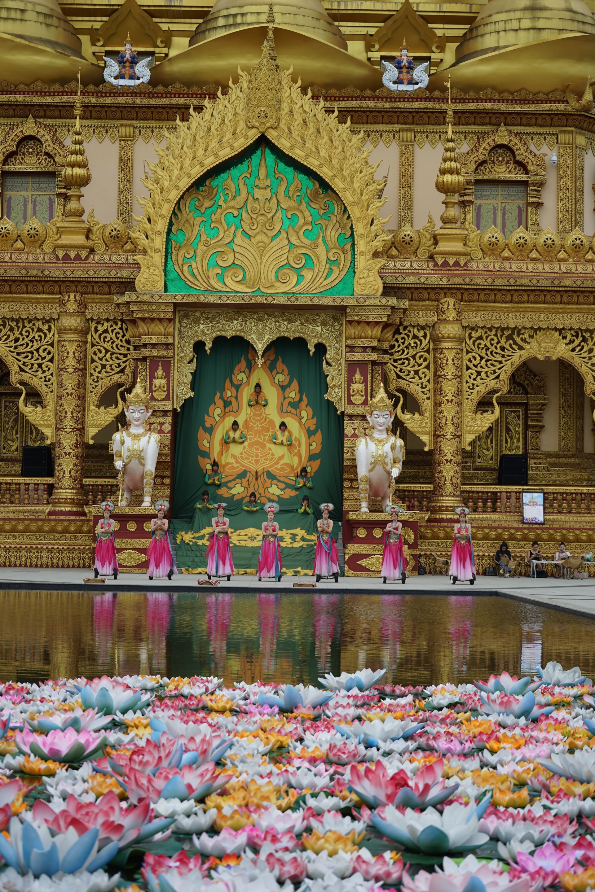 -เก้าจอม12เชียง เจดีย์ทองคำใหญ่ เป็น เจดีย์ที่มีสีทองอร่าม “9 ชั้น” หมายถึง 9 สวรรค์ในคติพุทธศาสนา “12 สถานที่” หมายถึง 12 สถานที่สำคัญในพระพุทธประวัติ